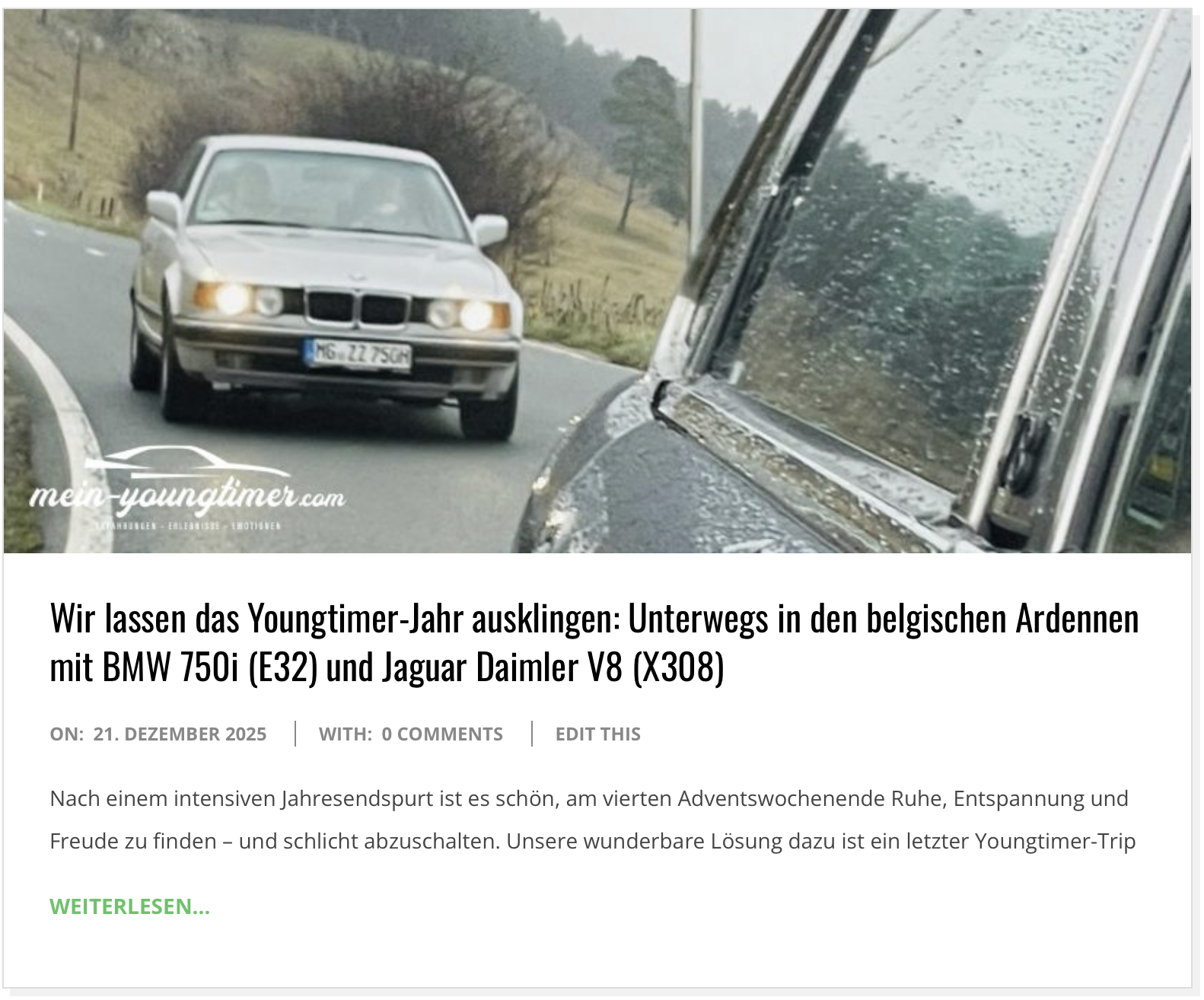 Neben x308.net schreibe ich auf mein-youngtimer.com einen regelmäßigen Youngtimer-Blog. Dort finden sich Berichte zu Erfahrungen, Erlebnissen und Emotionen mit ganz verschiedenen Youngtimer-Modellen. Wenn Euer Herz also auch für andere schöne Fahrzeuge der 80er und 90er schlägt, schaut dort gerne regelmäßig vorbei!